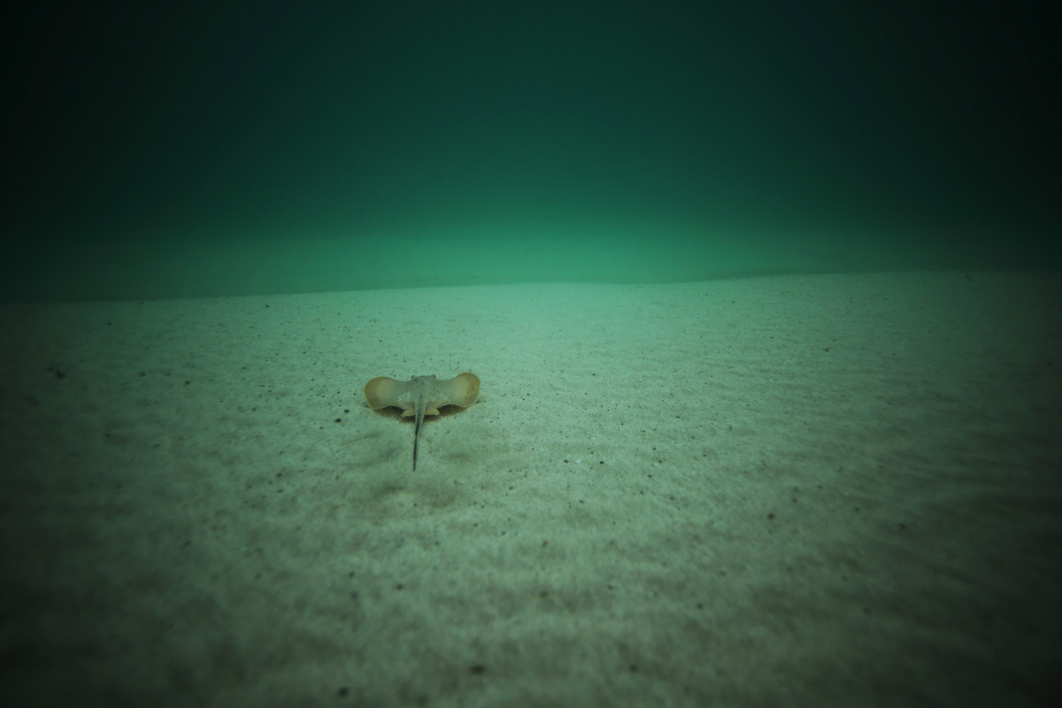 水の中は静かだった アカエイの子供が海底スレスレを泳いでいた